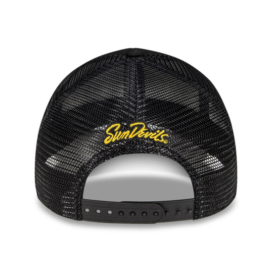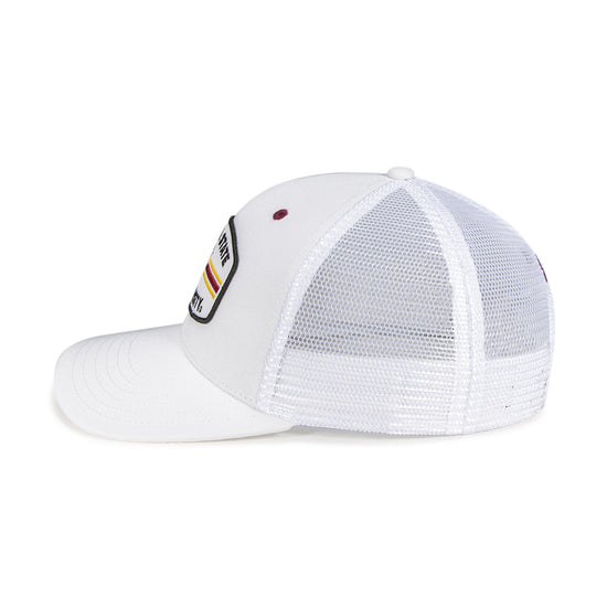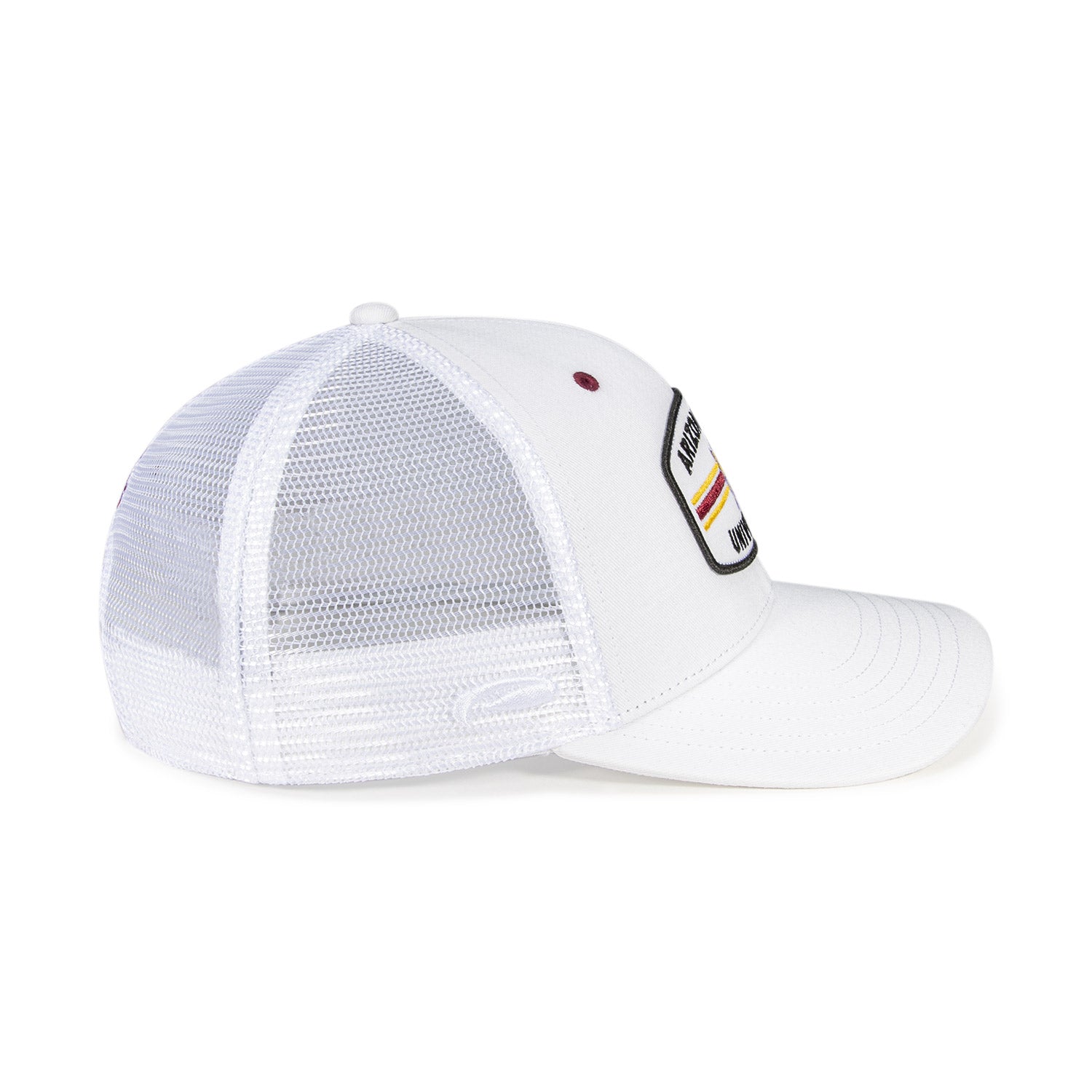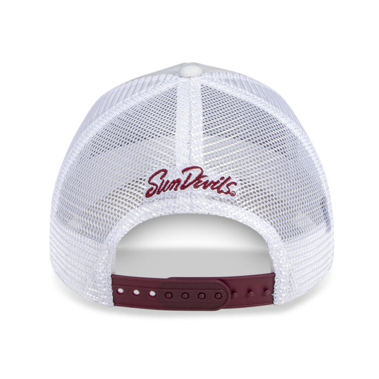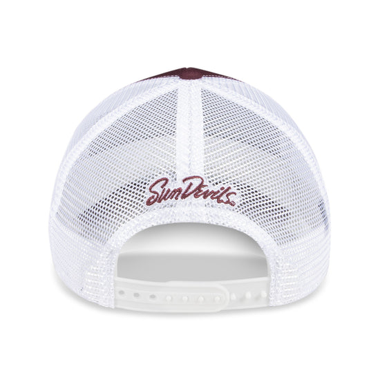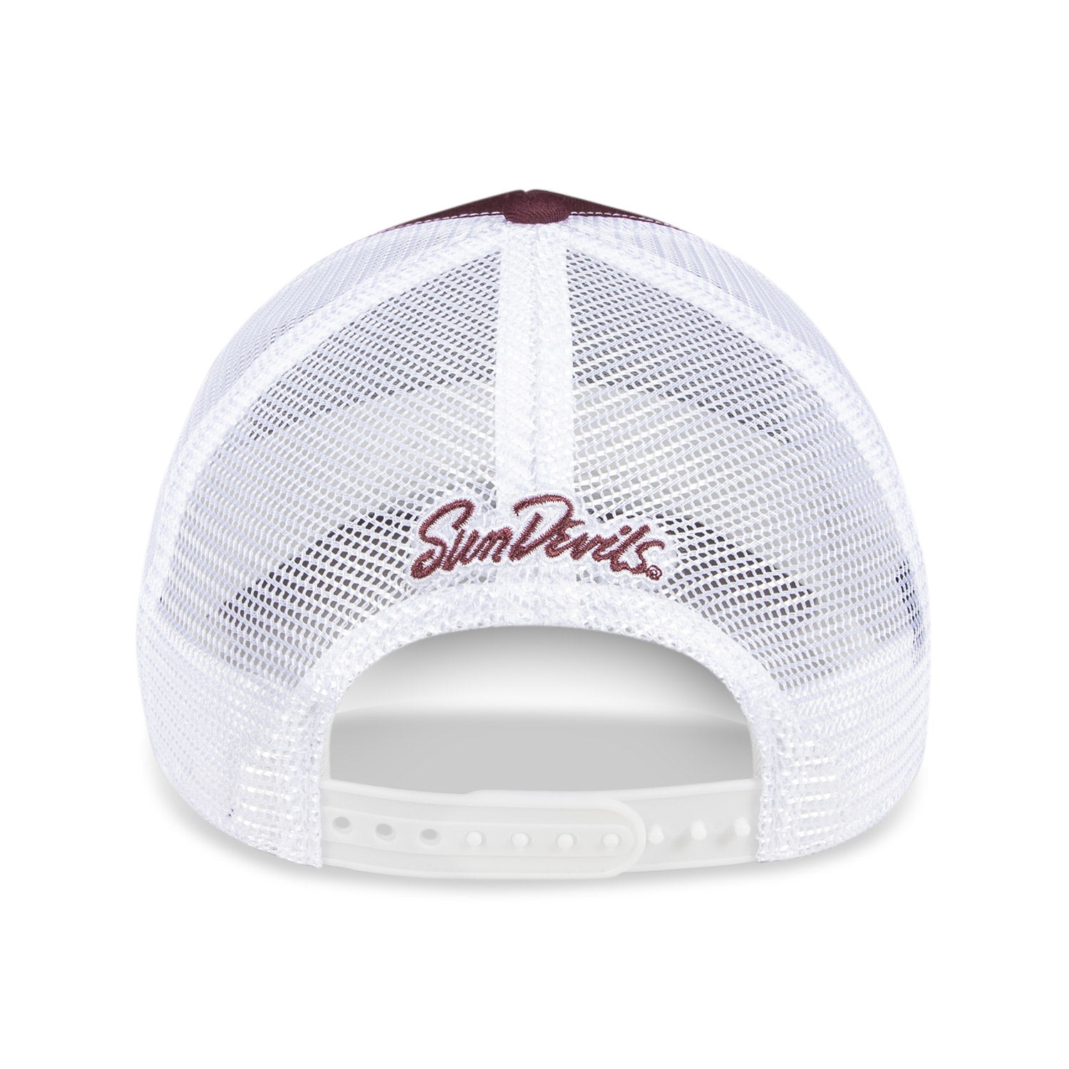 This mid crown, structured 6‑panel hat combines a casual look with team pride. Constructed with a cotton front and trucker mesh back, it showcases Arizona State University® embroidered on a twill patch, with Sun Devils® embroidered above the keyhole. Easy to wear at home, on the walk to the stadium, or during post-game hangs.