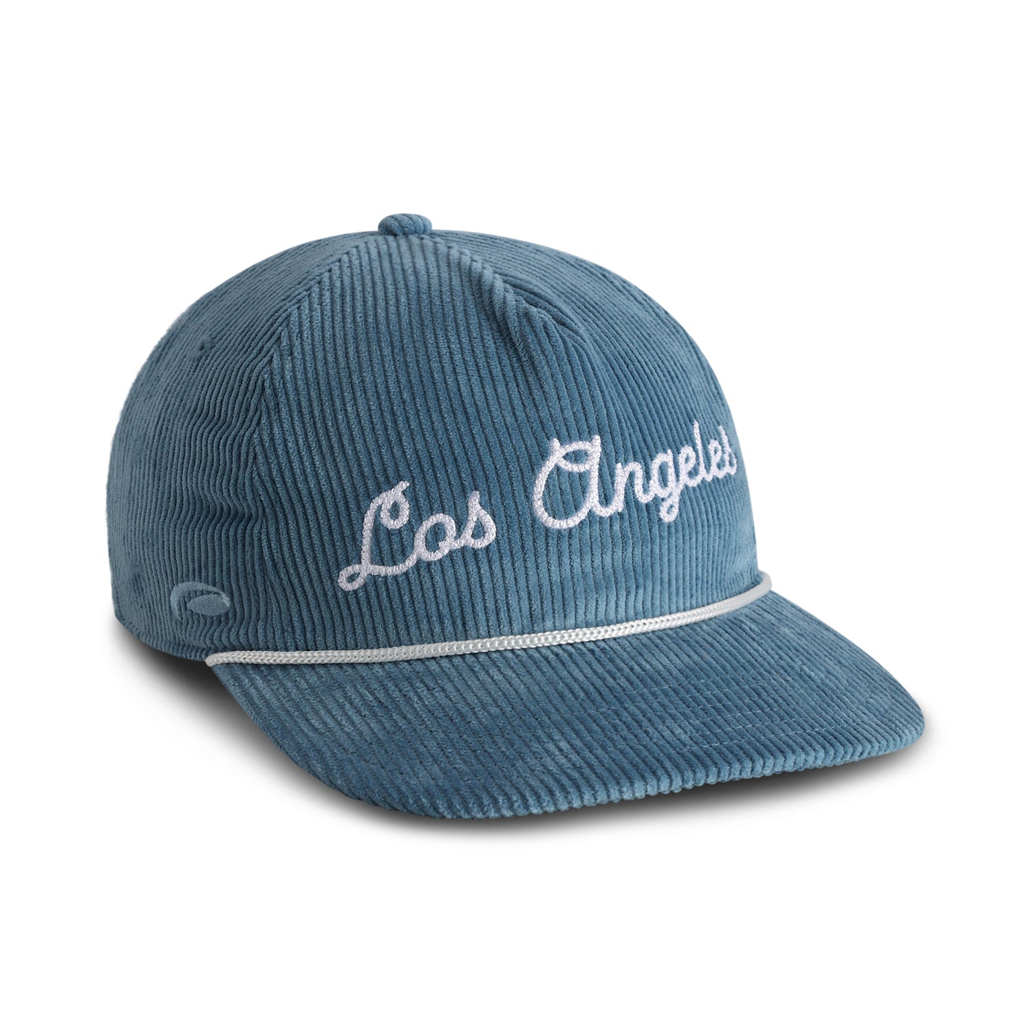 The Los Angeles snapback features a 5-panel, mid crown silhouette with an unstructured fit, mid curve visor and trucker rope detail. Made from 100% cotton, it includes a script lettering in flat embroidery with a textured detail and a state flag woven label crafted to stand out with a subtle nod to regional pride. Finished with a leather strap adjuster for a perfect fit.