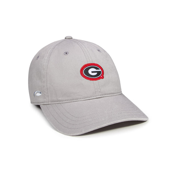 This low crown, unstructured 6-panel hat is built for everyday wear with a relaxed, laid-back fit. The classic “dad hat” design is elevated by The University of Georgia® primary mark woven on the front and keyhole embroidery at the back. Crafted from heavy-washed cotton twill with a curved visor, it delivers that perfectly worn-in feel from day one.