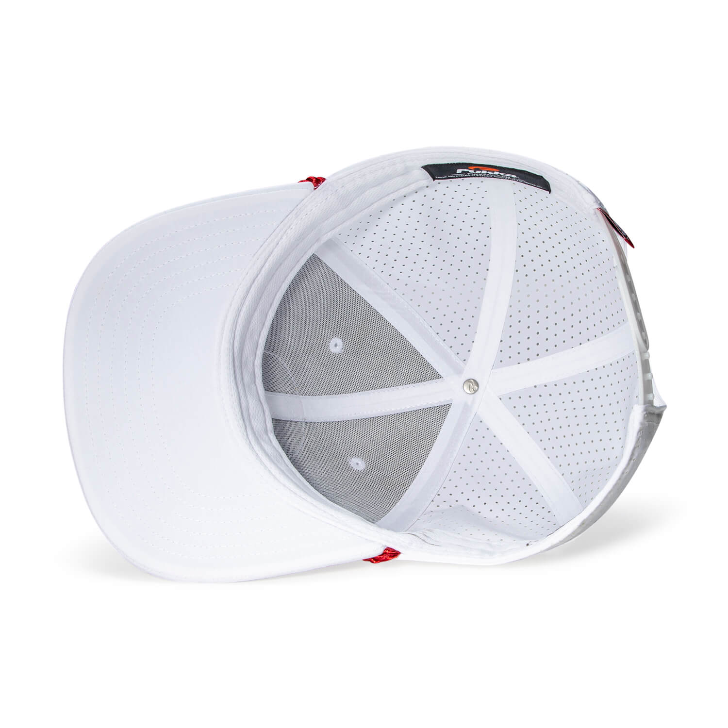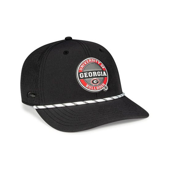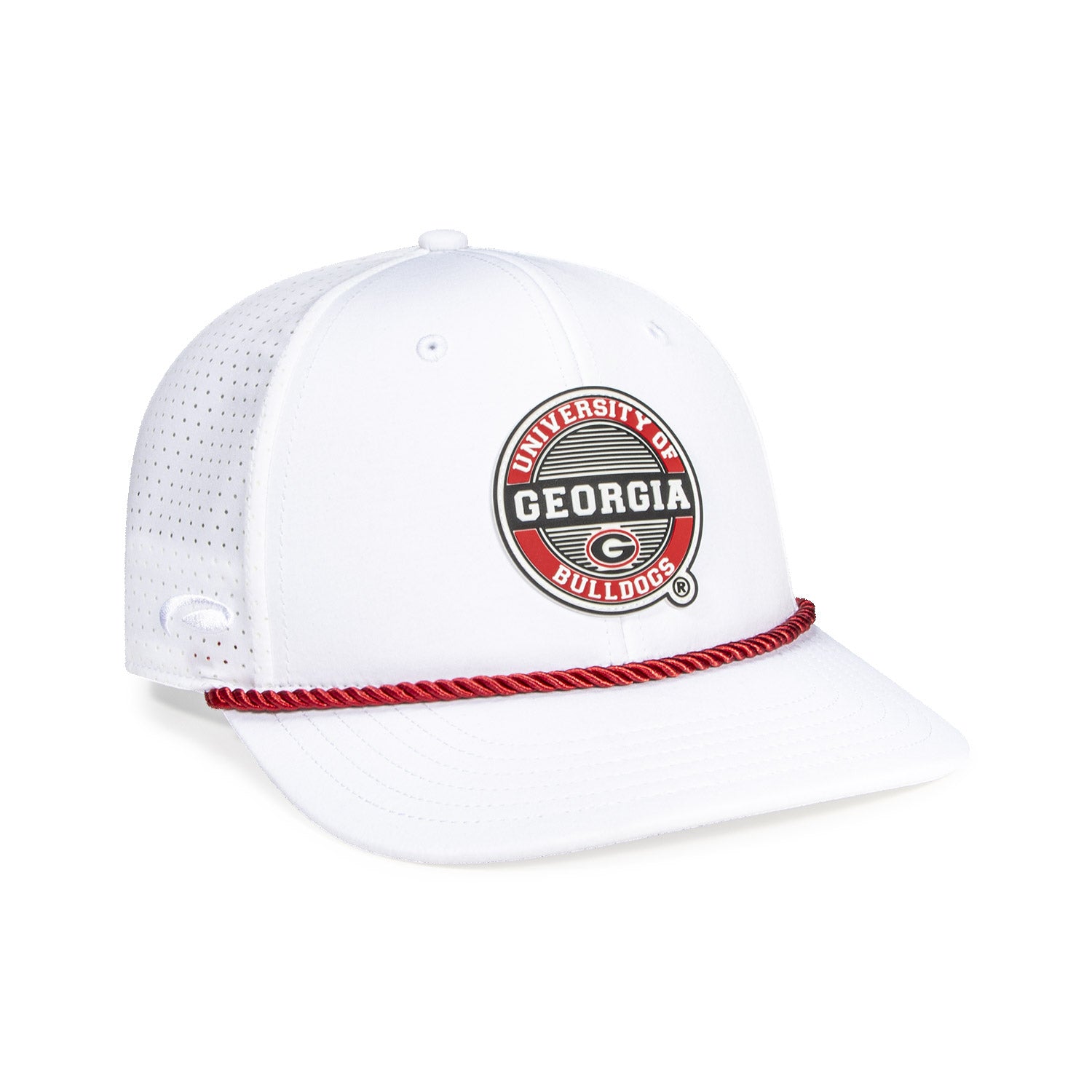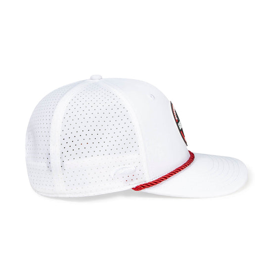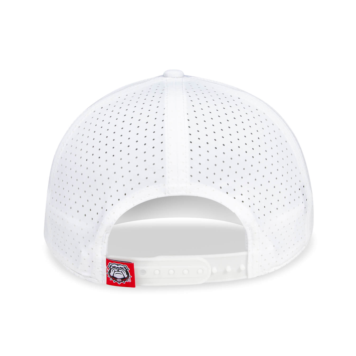 This mid crown, structured 6-panel hat was created with our best-selling performance fabric, featuring 30 UPF sun protection. An officially licensed rubber patch crowns the front, while a Bulldog® closure label adds a subtle touch. Perforated back panels, rope accent, and snapback closure deliver the perfect look to make you stand out in the crowd.
